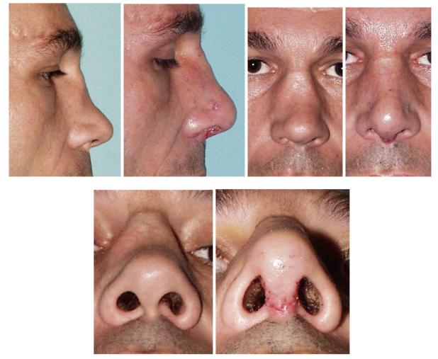 Slike 10. Korekcija kofoze osteotomijom nosnih kostiju sa rotacijom nosnog vrška (prije i poslije zahvata).