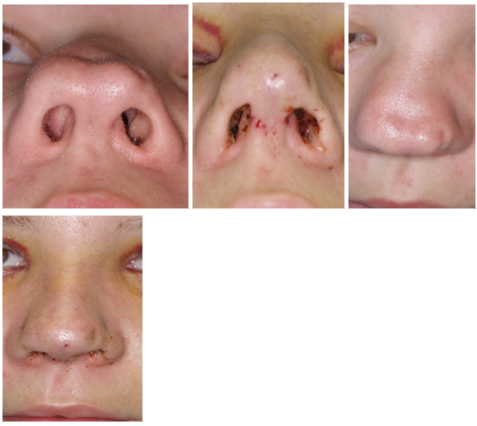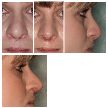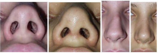 Slike 3. Sekundarna operacija nosa kod obostranog rascjepa usnice(rezultat prije i poslije zahvata).