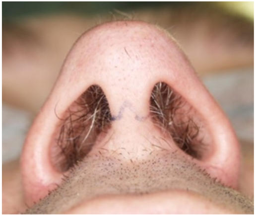 Slika 6. Planirani rez na kolumeli nosa kod otvorene tehnike rinoplastike.